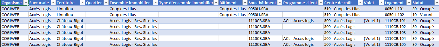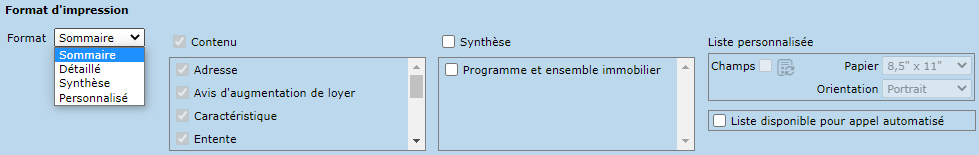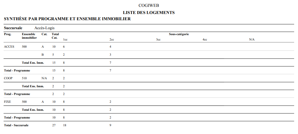 Les formats sommaire et détaillé permettent de regrouper les informations de la liste des logements selon les critères suivants :