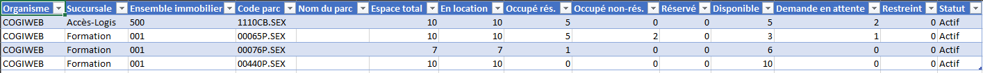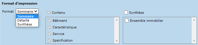 Le format synthèse présente un résumé des informations par ensemble immobilier.