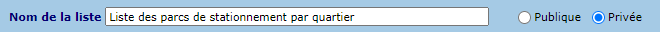 La liste des parcs de stationnement permet de spécifier les critères suivants :