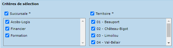 Les modèles publics sont partagés avec tous les utilisateurs de l'organisme, et ne peuvent être créés et modifiés que par les administrateurs. Ce type de modèle permet de masquer certains critères, au besoin.