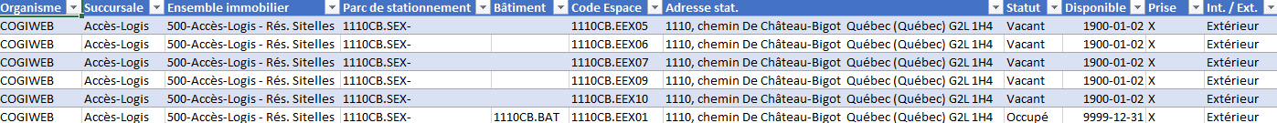 Exporter une liste de stationnements