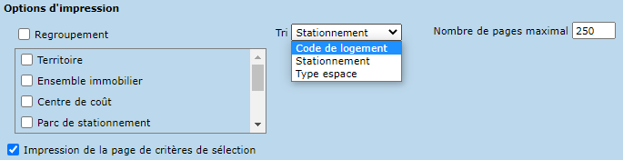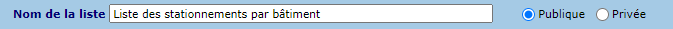 La liste des stationnements permet d'imprimer ou exporter une liste de stationnements, selon différents critères de sélection. Par ailleurs, des listes personnalisées de stationnements peuvent être enregistrées.