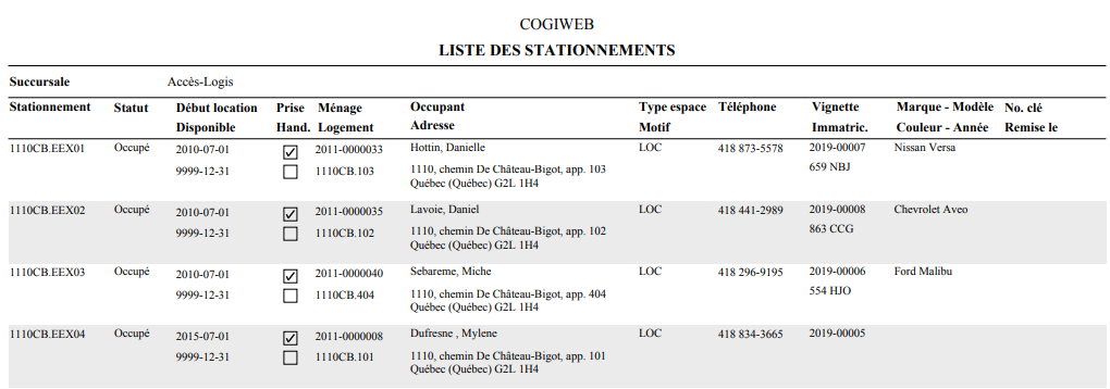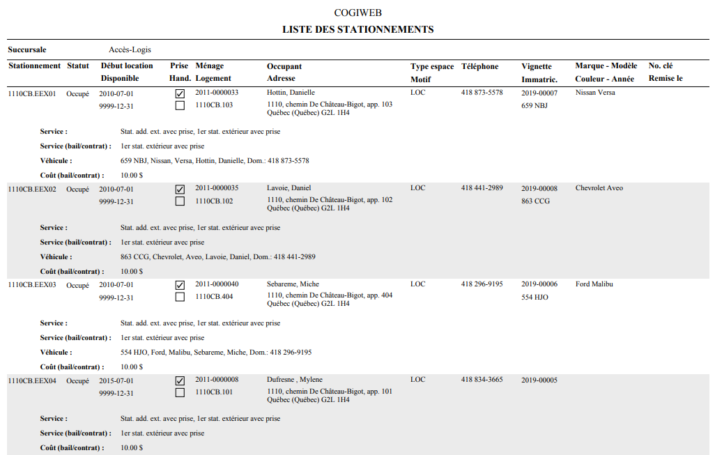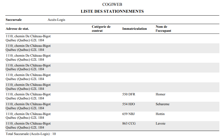 Le format sommaire fournit les informations de base pour chaque stationnement.