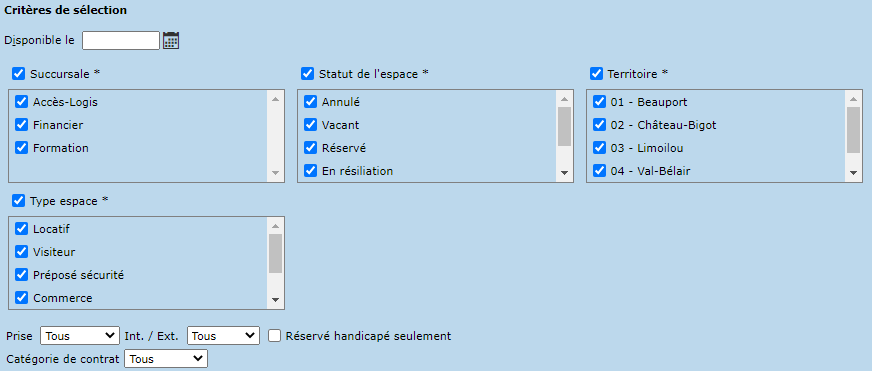Les modèles publics sont partagés avec tous les utilisateurs de l'organisme, et ne peuvent être créés et modifiés que par les administrateurs. Ce type de modèle permet de masquer certains critères, au besoin.