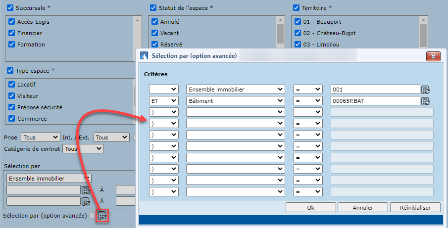 Par ailleurs, la "Sélection par" avancée permet d'inclure, exclure et comparer des valeurs à l'aide d'opérateurs logiques (ET, OU, <, >, <=, etc.).