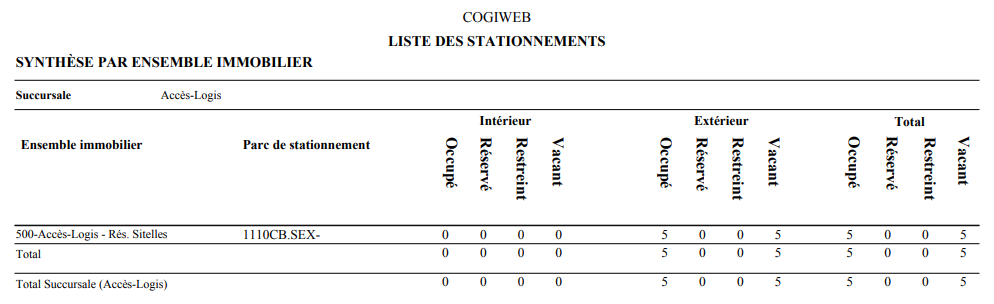 Le formats sommaire et détaillé permettent de regrouper les informations de la liste des stationnements selon les critères suivants :