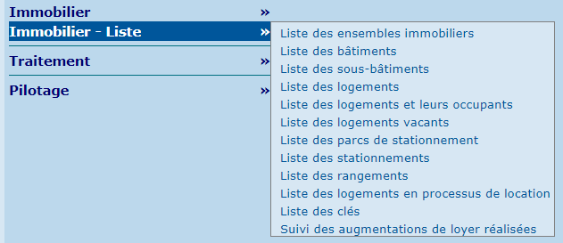 | Liste des logements | Permet de créer des listes de logements, selon différents critères. |