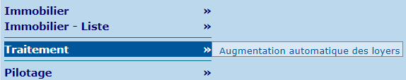 La section "Traitement" contient un traitement permettant d'effectuer l'augmentation des loyers de façon automatique. Essentiellement, ce traitement permet d'augmenter le coût des loyers en lot, au lieu d'augmenter les loyers de façon individuelle.