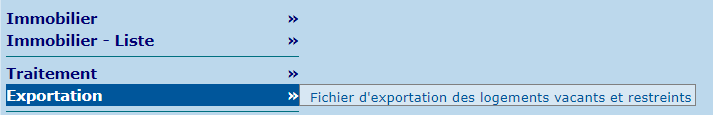 La section "Exportation" contient un traitement permettant l'extraction des logements vacants et restreints. Essentiellement, ce traitement permet d'exporter un fichier Excel contenant les logements restreints et vacant par programme.