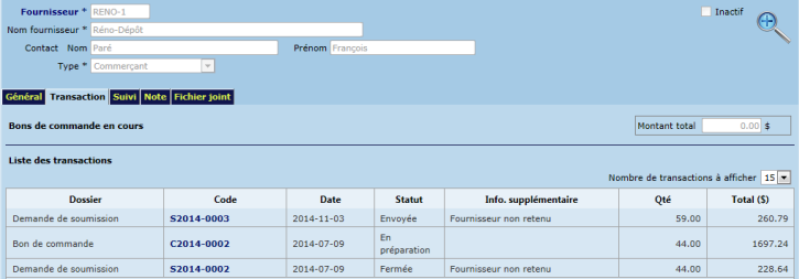 - Tous les bons de commande, soumissions et réceptions de matériel pour le fournisseur.