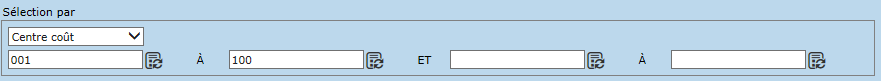 La section "Sélection par" permet de spécifier une ou plusieurs valeurs en particulier. Les catégories de valeurs disponibles sont :