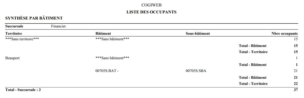 Les formats sommaire et détaillé permettent de regrouper les informations de la liste des occupants selon les critères suivants :