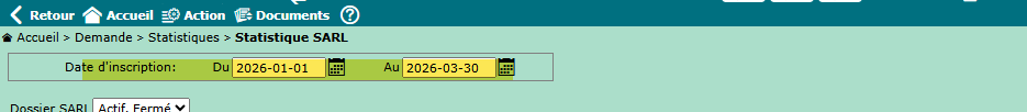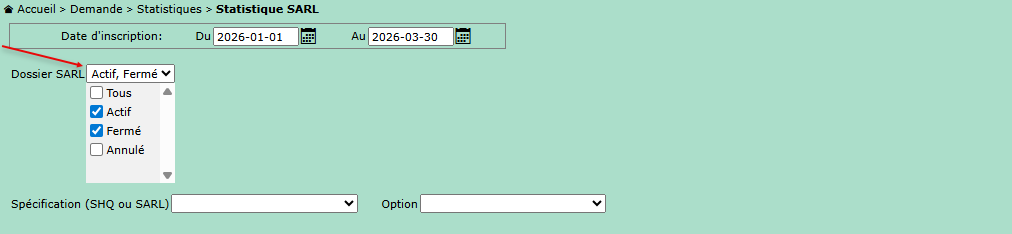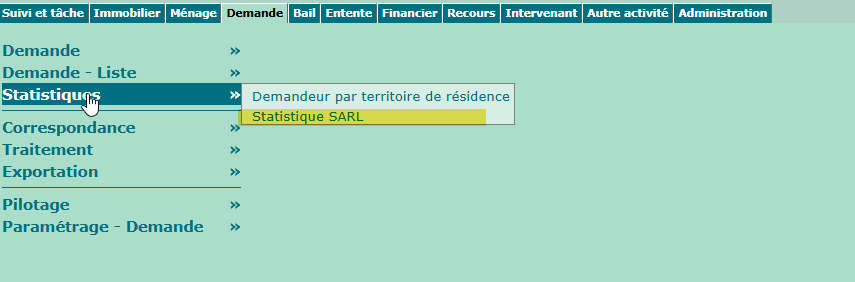 Se rendre dans l'onglet Demande, puis aller dans Statistiques => Statistique SARL.