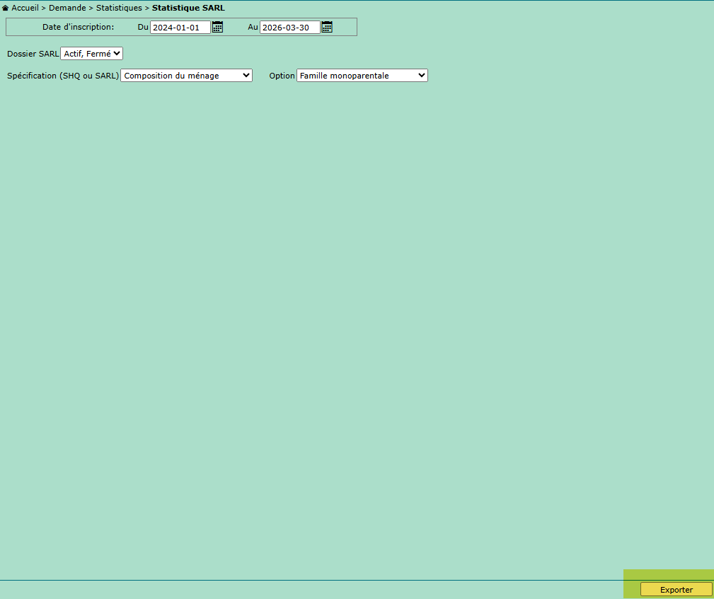 NOTE : Pour exporter ces statistiques, l'organisme doit obligatoirement avoir accès au SARL. Dans le cas contraire, la fenêtre ne sera pas disponible.