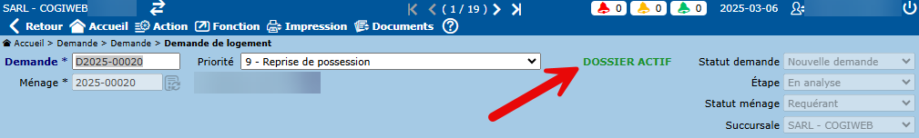 Dans les demandes, il existe la notion de statut du dossier SARL. Il apparait dans l'entête de la demande.
