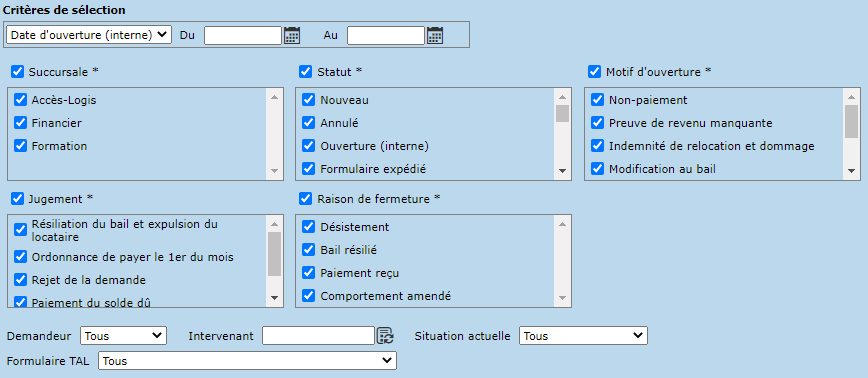 - Date d'ouverture (interne) (Du, Au)