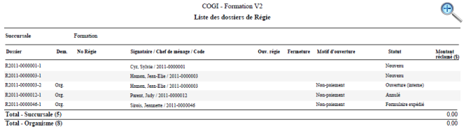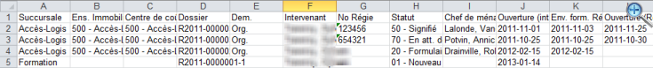 - Date d'ouverture (Régie) (Du, Au)