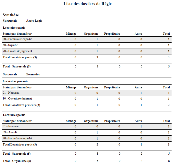 - Statut par demandeur