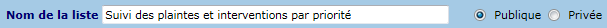Le suivi des plaintes et interventions permet d'imprimer et exporter le suivi des plaintes et interventions, selon différents critères de sélection. Par ailleurs, des listes personnalisées de plaintes et interventions peuvent être enregistrées.
