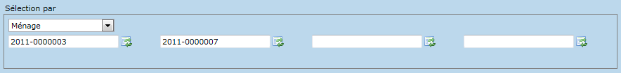 La section "Sélection par" permet de spécifier une ou plusieurs valeurs en particulier. Les catégories de valeurs disponibles sont :