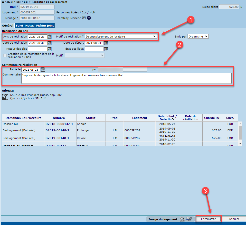 La résiliation de bail sert à mettre fin à un bail lorsqu'un locataire quitte l'organisme en cours de bail, à la fin de son bail, ou s'il change de logement.